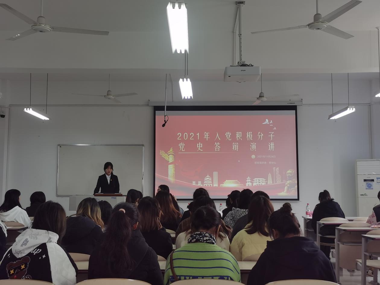 此次答辩会共有23名已满一年的优秀入党积极分子参加。答辩方式为入党陈述演讲与评委提问相结合:答辩者结合PPT进行自我介绍、简述对党的认识、学习党史的体会、入党动机以及个人总结,随后评委对该答辩者进行提问。参加此次答辩的入党积极分子准备充分、沉着冷静,表示无论此次是否能够成功列入发展对象,都将一如既往以一名共产党员的标准严格要求自己,不忘初心,继续前进。