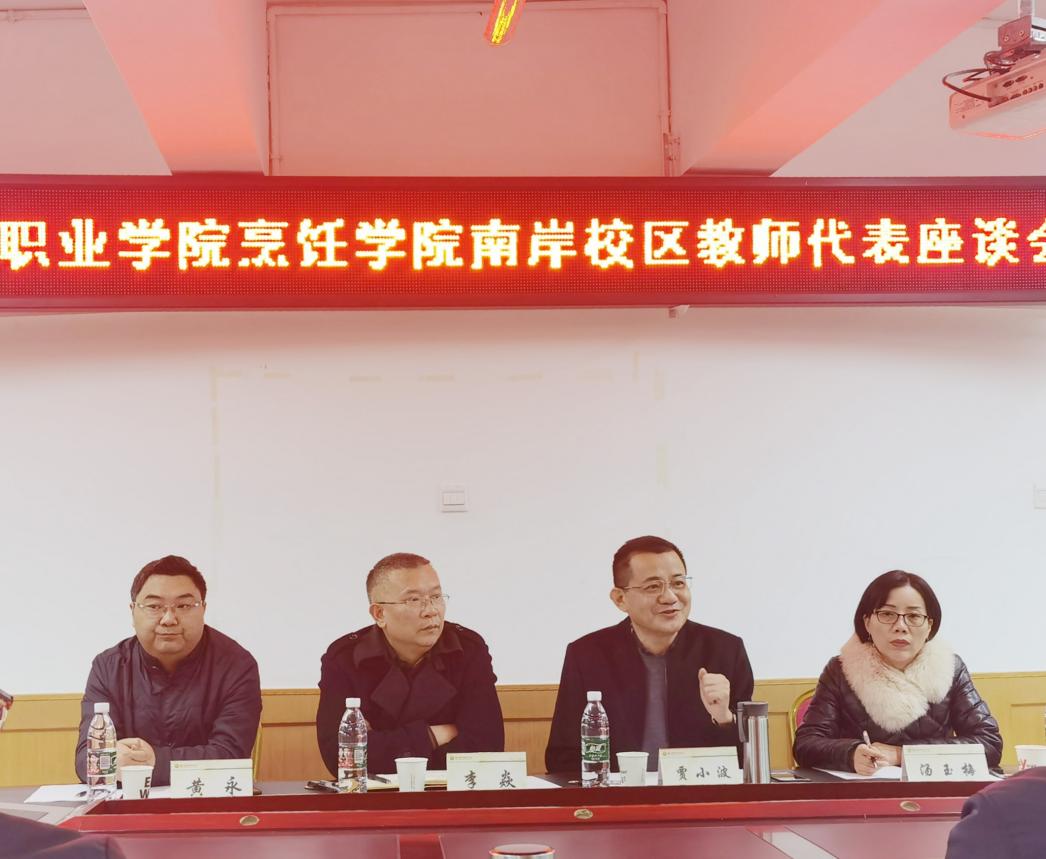 【文/图 质量管理处】11月24日,学校副院长贾小波前往烹饪学院南岸校区调研并召开师生代表座谈会。教务处、质量管理处、实习实训管理中心等部门负责人陪同调研。