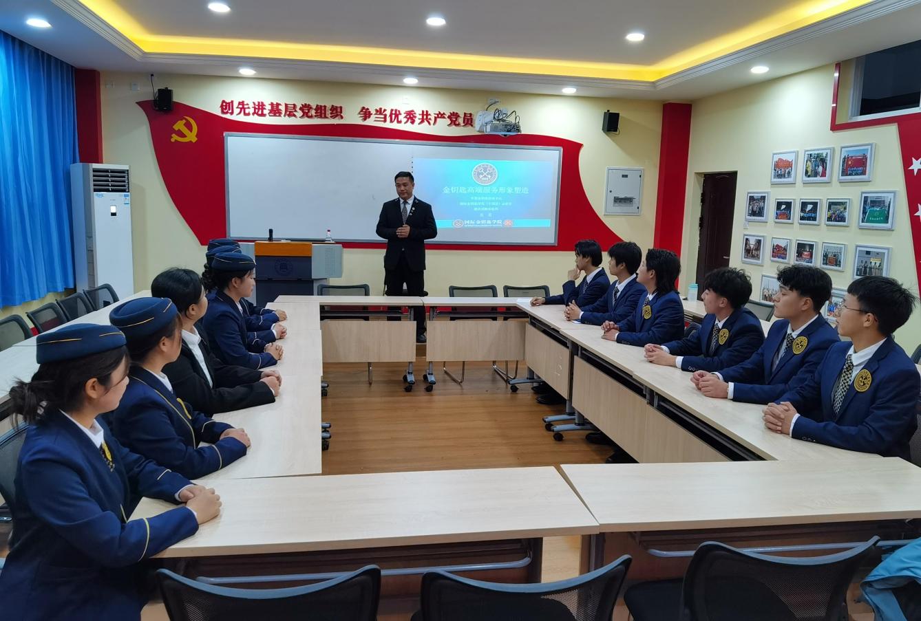 在2301会议室,张勇为全体金钥匙班的同学们讲授了开班第一课。用丰富精彩的课程内容带领同学们身临其境地感受了什么是“服务”,什么是“金钥匙服务”,什么是“金钥匙精神”……。课程让同学们亲身感受了“金钥匙”课程带来的魅力,同学们纷纷表示能够成为金钥匙班的一名学员深感荣幸,一定以饱满的学习热情投入培训学习,学以致用,以行动展示金钥匙服务精神。