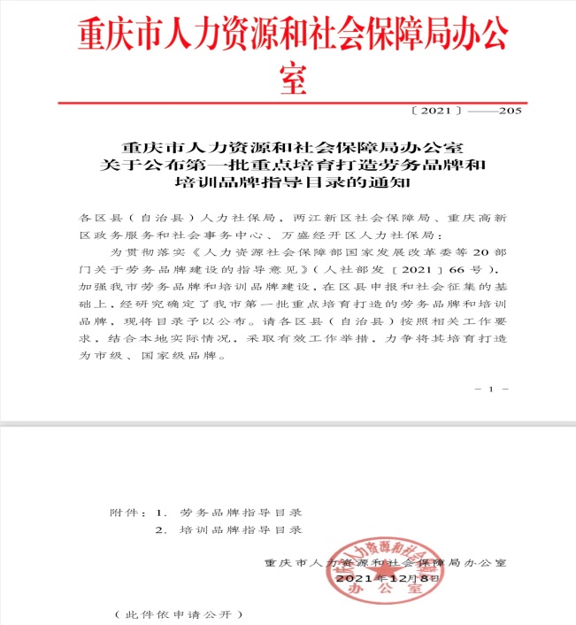 【文/图 继续教育学院】12月13日,重庆市人力资源和社会保障局公布了第一批重点培育打造劳务品牌和培训品牌指导目录。学校申报的“巴渝名厨”劳务品牌榜上有名。为了维护和打造好该市级品牌,南岸区人社局将采取有效工作举措将劳务品牌培训基地落户学校南岸校区,力争将其培育打造为市级、国家级品牌。