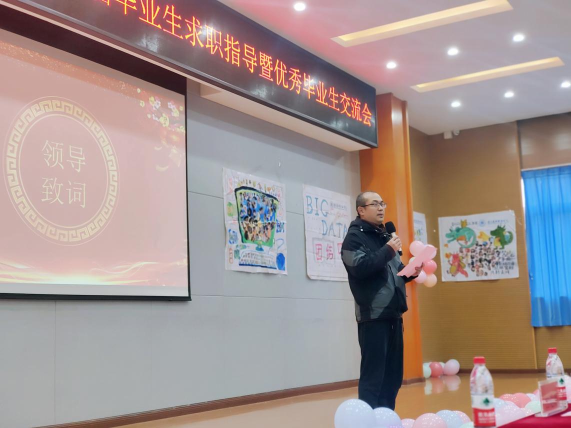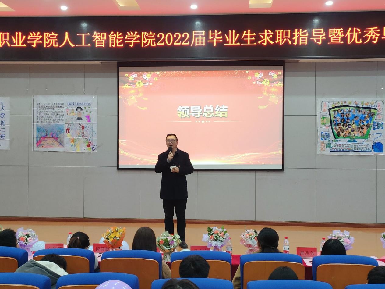 人工智能学院院长为本次活动致开场辞。他指出,毕业班学生要以包容心做社会人,兼容并蓄方可适应社会潮流;要以快乐心做学习人,终身学习才能保持应变技能;要以责任心做职业人,爱岗敬业方可畅游职业生涯。