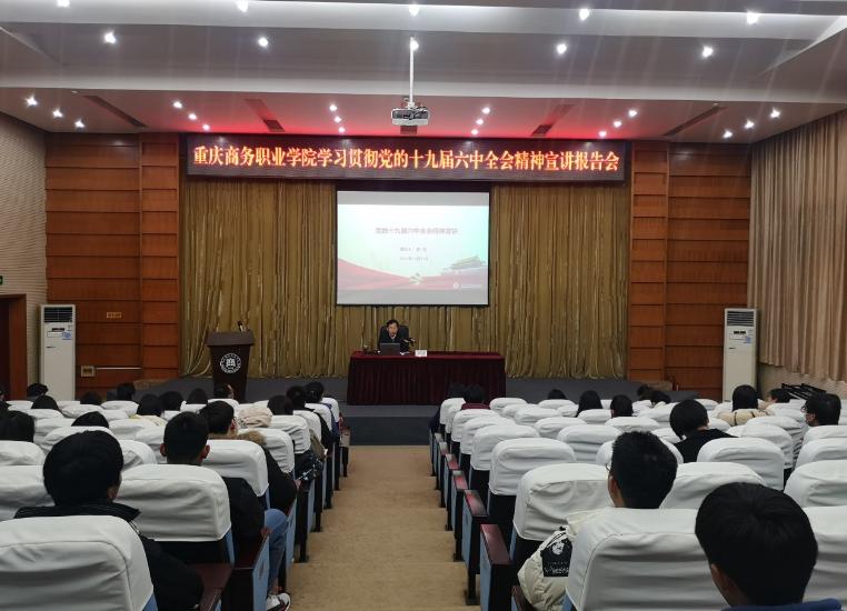 【文/图 贺睿】12月31日,学校党委委员、副院长、学校宣讲队副队长舒鸿在第一会议室宣讲党的十九届六中全会精神,经济贸易学院、电子商务学院、继续教育学院的师生代表共100余人聆听了报告。