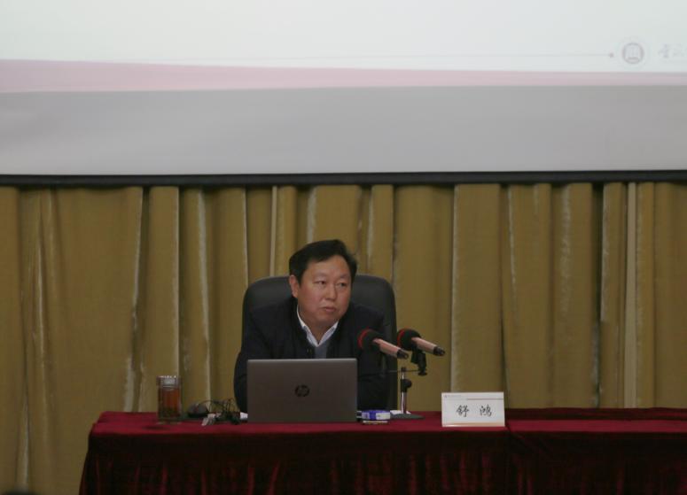 舒鸿结合学校实际提出了学习宣传贯彻党的十九届六中全会精神的具体要求。他强调,党的十九届六中全会全面总结了党的百年奋斗重大成就和历史经验,对推动全党进一步统一思想、统一意志、统一行动,团结带领全国各族人民夺取新时代中国特色社会主义新的伟大胜利,具有重大现实意义和深远历史意义。全体师生要充分认识全会精神的重大意义,深入学习领会《中共中央关于党的百年奋斗重大成就和奋斗经验的决议》的丰富内涵,从党的百年奋斗重大成就和历史经验中汲取智慧和力量,切实增强“四个意识”、坚定“四个自信”、做到“两个维护”。全校师生要将十九届六中全会精神转化为奋发图强的强大动力,锐意进取、埋头苦干,推动学校建设和改革,进一步为学校高质量发展贡献力量。