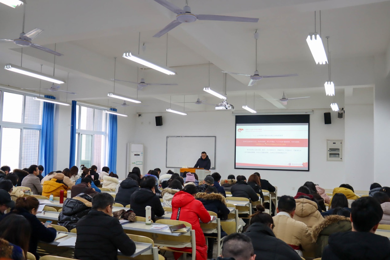 【文/图 会计学院】12月29日,学校党委委员、副院长,学校宣讲队副队长丁谦在2403为会计学院和财经管理学院全体教职工作学习贯彻十九届六中全会精神专题宣讲。