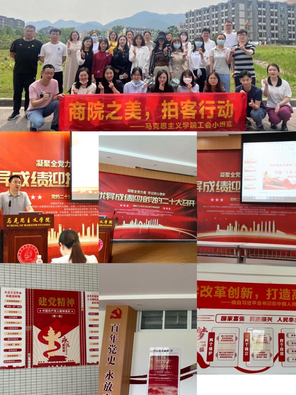 据悉,2022年上半学年,马克思主义学院举办了“喜迎二十大共筑强军梦”“喜迎二十大健步赏校园”“喜迎二十大党的历届代表大会知识竞赛”“喜迎二十大讲红廉故事”“喜迎二十大大学生讲思政课”“喜迎二十大优秀党员讲党课”等系列活动,打造完成了中国共产党精神谱系文化走廊党建活动室宣传阵地,为庆祝“七一”,迎接党的二十大胜利召开营造了浓厚的氛围。