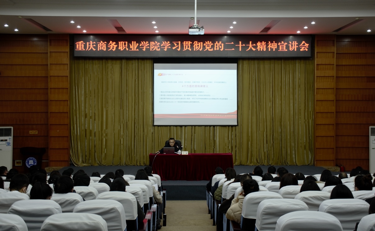 【文/后勤处 图/宣传部】2月22日,副院长丁谦在办公楼一会议室宣讲党的二十大精神,后勤处、信息技术中心、图书馆、会计学院、财经管理学院教师及学生代表共计200余人参加宣讲会。