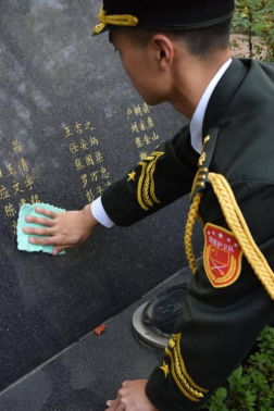 在革命英雄烈士墓前,党员教师和青年学子们神情肃穆,向革命烈士默哀悼念,寄托无限哀思。在学生骨干代表的带领下,全体青年代表重温入团誓词,激发青年学子的责任使命感。最后,师生代表绕墓一周为革命英烈献上了亲手制作的小白花,并擦拭革命烈士墓碑,献以最诚挚的敬意,深切缅怀先烈,牢记使命担当,承续奋斗之志。