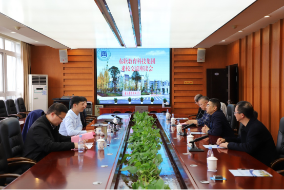 参观结束后,学校在第六会议室举行交流座谈会,江涛院长对董本清一行表示欢迎,随后介绍了学校的人才培养、专业建设、办学成果以及学校发展历史及未来的发展目标,并希望双方以本次交流活动为契机,开展常态化交流,探索合作模式,深化合作内容,实现优势互补、校企双赢,共同为推进职业教育高质量发展贡献力量。