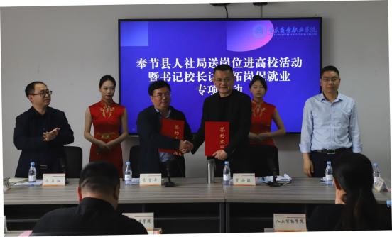 【文/图 招生就业处】为积极响应教育部办公厅关于开展2023届高校毕业生春季促就业攻坚行动的通知,抢抓春季促就业工作关键期,鼓励毕业生到基层、到家乡就业。4月12日,学校与奉节县人力资源和社会保障局联合开展“奉节县送岗位进高校活动”暨书记校长访企拓岗促就业专项行动。学校副院长贾小波,奉节县人力资源和社会保障局党委委员、就业和人才中心主任袁官平,就业和人才中心副主任余传奎,沙坪坝区就业和人才中心李科,奉节县企业代表,学校招生就业处、二级学院相关人员,奉节籍学生代表参会。