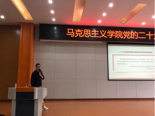 【文/图 马克思主义学院】4月12日下午1时,马克思主义学院在学术报告厅开展了“国史讲坛”党的二十大精神宣讲系列主题第二场讲座。本场讲座由刘一丹、李潇宇老师主讲,刘蓉老师主持,共300余名学生聆听。