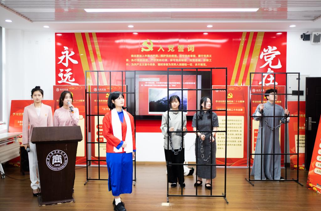 宣讲团成员陈灵凌结合自身对党的二十大精神的学习体会以及以我校优秀毕业生吴艳洁同学为例,为广大同学讲述吴艳洁同学怎么从一名普通同学到走出国门,为国争光,成为世界冠军的事迹,勉励同学们不负时代、不负韶华,立志做有理想、敢担当、能吃苦、肯奋斗的新时代好青年。宣讲团成员、青年教师刘琴以“立德树人守初心,三全育人为使命”为主题,为同学们展示了会计学院践行“三全育人”全过程和取得的阶段性成效,号召广大党员要用心、用力、用情写好会计学院“三全育人”新篇章。宣讲团成员、优秀学生代表袁梦、周思妤和刘笑围绕“崇尚英雄,争做先锋”为主题,叙述了红岩英雄陈然面对敌人的严刑拷打,始终坚守共产党人的崇高信念,没有一丝的动摇的事迹,教育广大学生要发扬光荣传统、传承红色基因,做社会主义核心价值观的坚定信仰者、积极传播者、模范践行者。