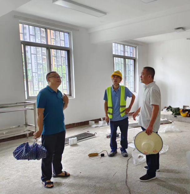 【文/图 后勤处】7月25日,副院长丁谦带领后勤处负责人及有关人员到南岸校区检查指导校舍改造项目,并慰问施工单位和现场管理人员。