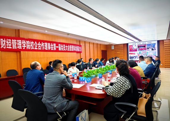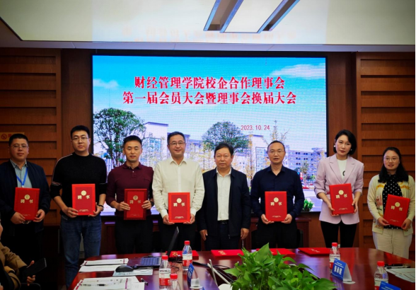 苏启立作了财经管理学院第一届校企合作理事会工作汇报。会议通过了新一届理事长、副理事长、理事成员单位名单和《理事会章程》(修订),推选财经管理学院为理事长单位。舒鸿为副理事长单位、常务理事单位颁发了聘书,新一届理事会副理事长单位新道科技股份有限公司、广联达科技股份有限公司在会议上分别作了发言。