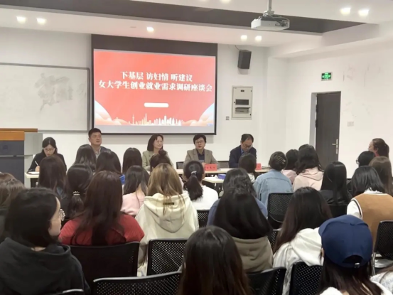 在随后进行的女大学生需求调研座谈会上,重庆市妇联发展部副部长张京、重庆市妇联一级调研员王光发,沙坪坝区妇联党组成员、副主席王晨阳,重庆商务职业学院妇联副主席、质量管理处负责人,招生就业处负责人与学生们进行了深入交流,了解并回答了同学们在“就业创业指导”“职场维权”等方面的需求与疑惑。