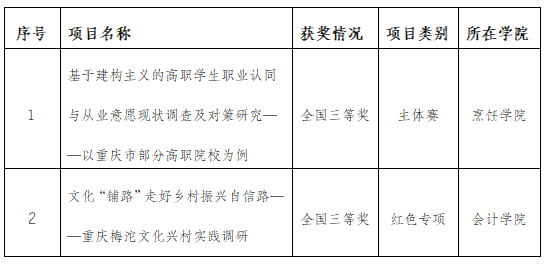 此外,在重庆市选拔赛中,学校同样取得佳绩,荣获市级奖项19项。16项作品获得主体赛市级奖项,其中特等奖1项,一等奖1项,二等奖5项,三等奖9项;3项作品获得红色专项活动市级奖项,其中一等奖1项,二等奖2项;学校团委获评优秀组织奖。学校市赛获奖数量及等次较上届大幅提升,位居重庆市高校前列。