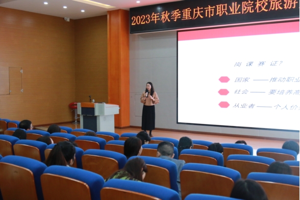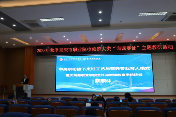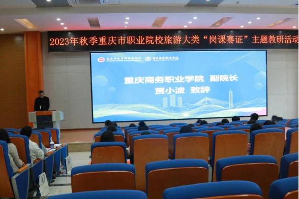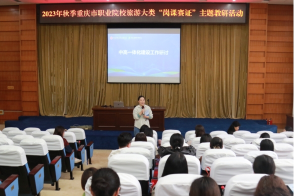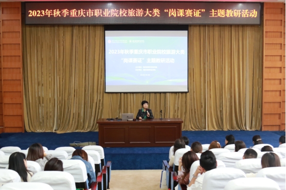 【文/图 文化旅游学院】11月10日,由重庆市教育科学研究院主办、学校承办的2023年秋季重庆市职业院校旅游大类“岗课赛证”主题教研活动在第二学术报告厅顺利召开。来自全市各高等职业院校、中等职业学校的领导和教师共100多人参加此次教研活动。