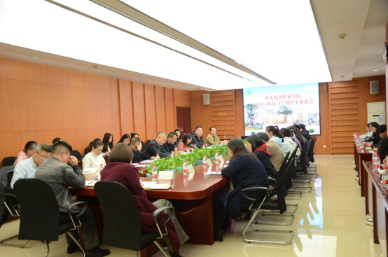 【文/图 质量管理处】11月27日下午,学校召开2023-2024学年第一学期学生座谈会。副院长贾小波,质量管理处、教务处、实习实训管理中心及二级学院负责人,学校各专业学生代表,质量管理处相关人员参加座谈会。