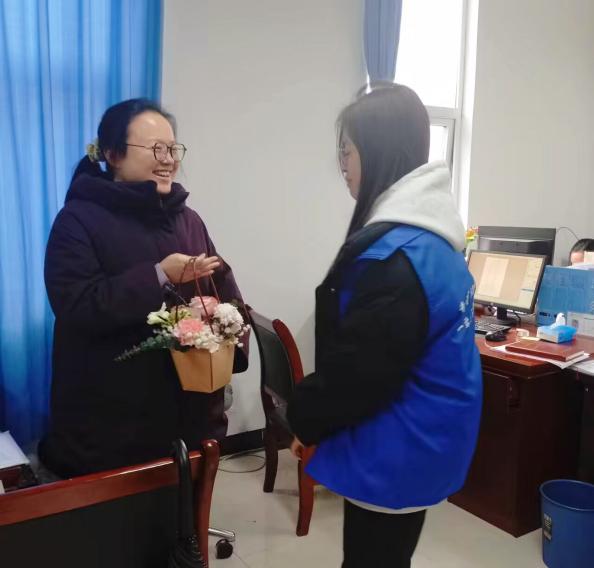 活动结束,学生们将亲手创作的40个花艺作品赠送给女教师,表达对女教师们的节日祝福。
