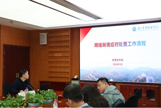 党委宣传部杨欣围绕严格落实网络意识形态工作责任制、网络舆情形势背景、学校网络舆情应急处置流程等方面内容,列举典型案例、分析舆情焦点、提出工作建议和措施,展开了深入浅出的讲解。