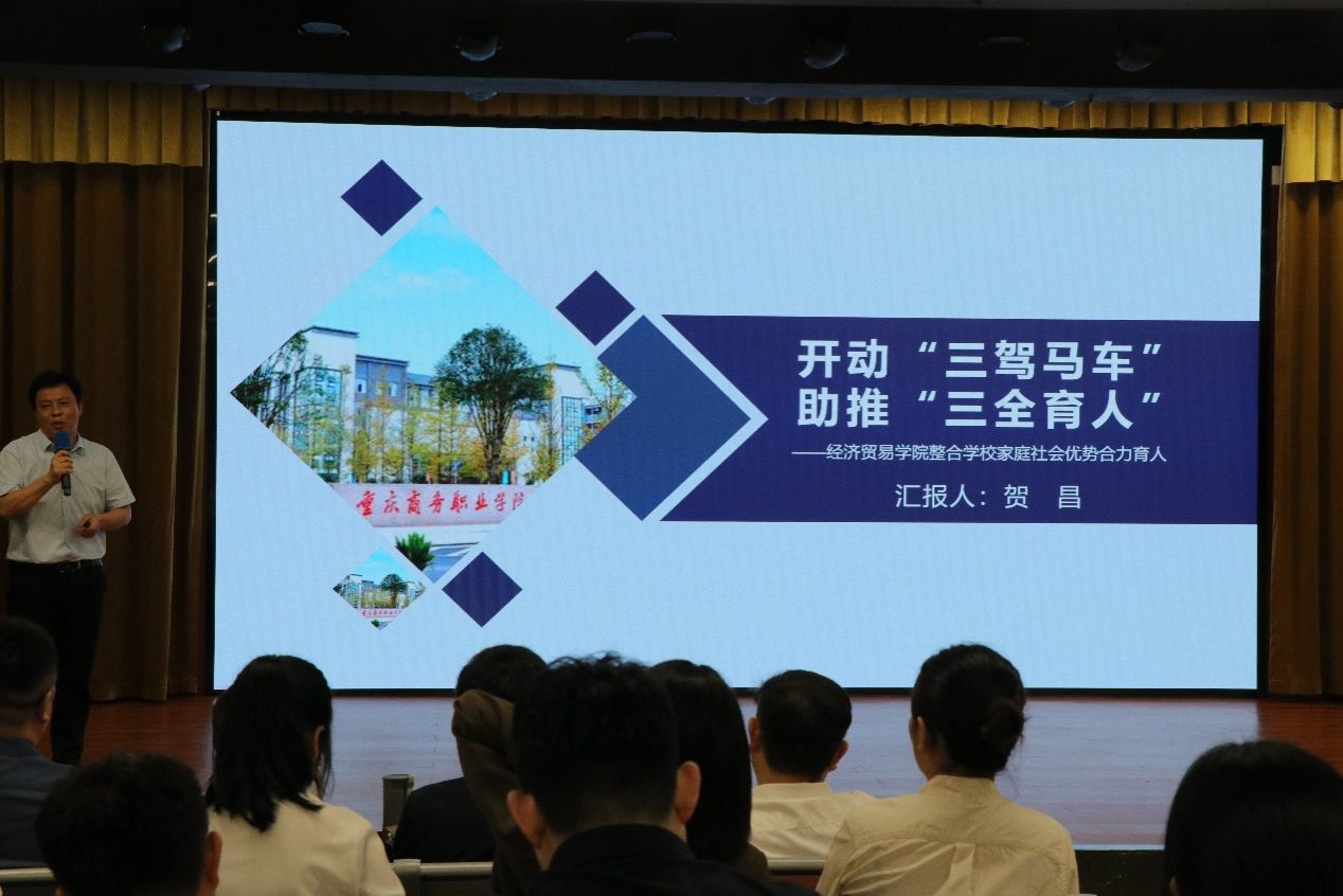 经济贸易学院党总支副书记贺昌作《开动“三驾马车” 助推“三全育人”》主题分享