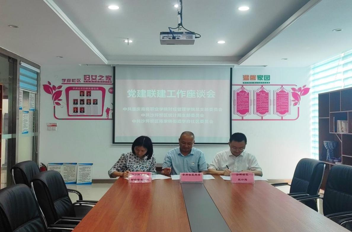 在陈家桥街道学府社区党建会议室,沙坪坝区统计局党组成员、副局长郑茂,陈家桥街道学府社区党委书记阳平,财经管理学院党总支书记苏启立分别对各自单位的基本情况以及本单位组织机构、党建特色亮点等情况进行了介绍,三方聚焦基层组织建设、提高基层治理水平、精准化服务基层群众及深入推进党纪学习教育等方面进行了相互交流和经验分享。