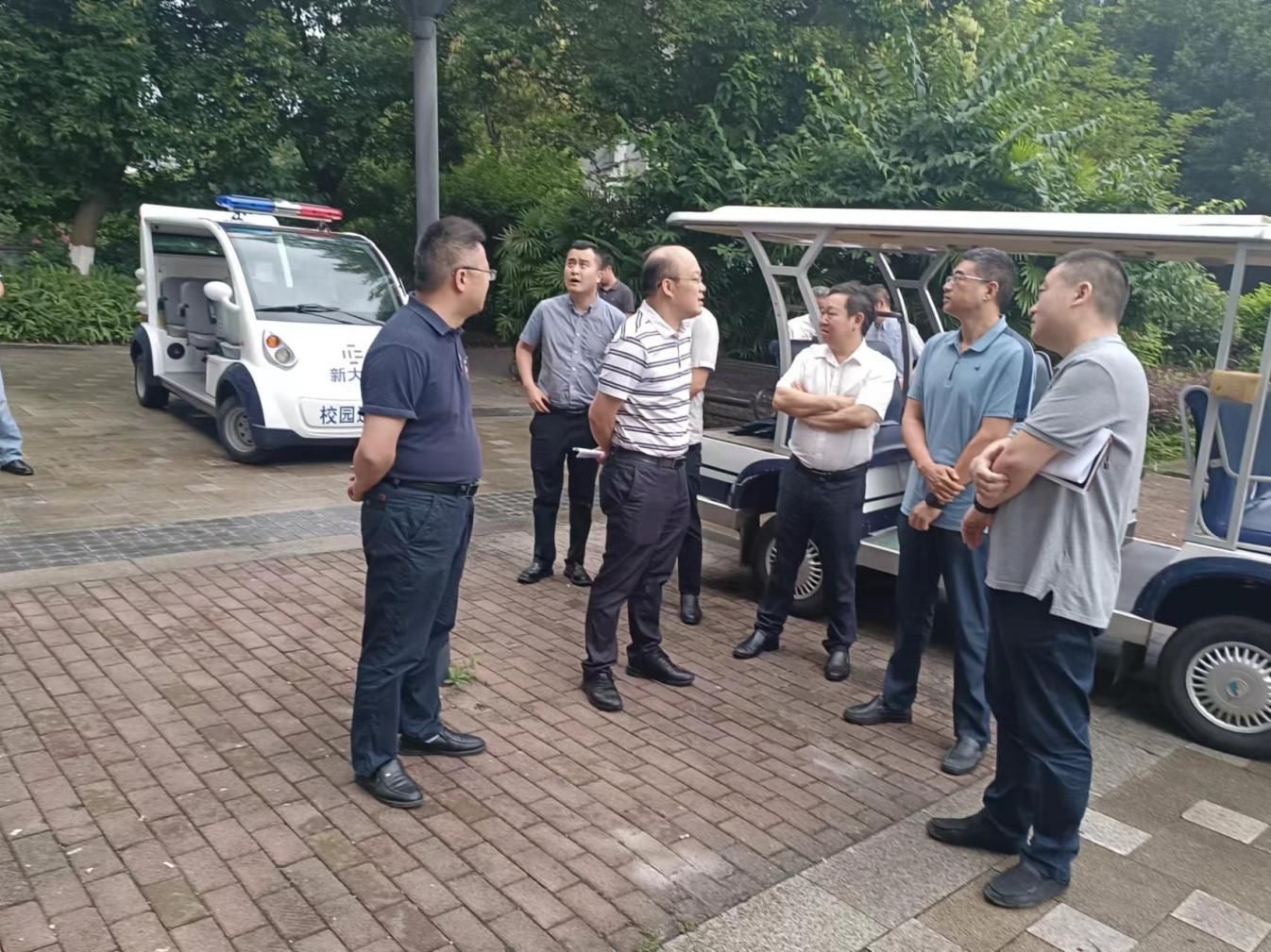 【文/图  党委保卫部】为保障校园交通安全,破解学校人车分流通行难题,7月1日上午,党委书记江涛,党委副书记、院长陈忠飞,副院长舒鸿带队,现场研讨学校人车分流交通改造工作。党委保卫部、党委学生工作部、后勤处等部门负责人和相关工作人员参加。