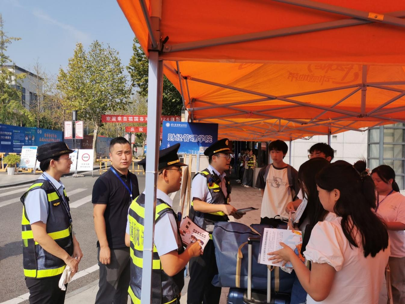 党委保卫部联合交通运输执法人员现场对报到新生进行普法宣传