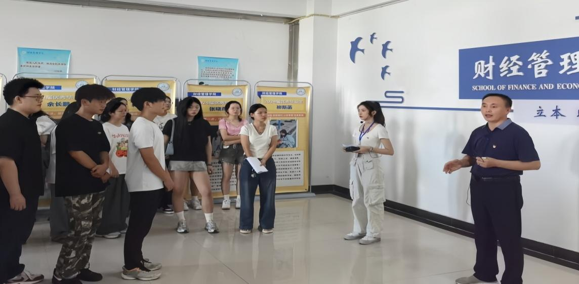 文化育人浸润。在学院文化长廊,党总支副书记结合金融专业建设,与同学们一起学习领会习近平总书记关于积极培育中国特色金融文化的重要讲话精神;将新时代廉洁文化与学院“敬静竞净”文化融合,希望新同学涵养优良学风,崇尚时代新风。