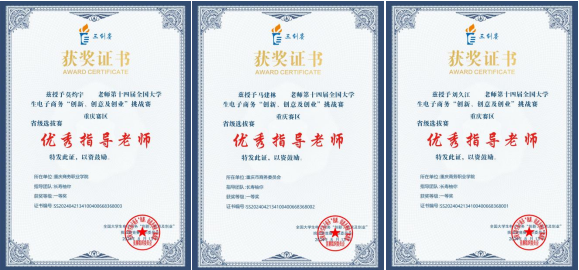 【文/图 文化旅游学院】近日,第十四届全国大学生电子商务“创新、创意及创业”挑战赛总决赛圆满落幕。重商学子在大赛中斩获佳绩,荣获重庆赛区选拔赛一等奖1项、二等奖2项、文化旅游学院莫灼宇、马建林、刘久江老师荣获重庆赛区优秀指导教师。