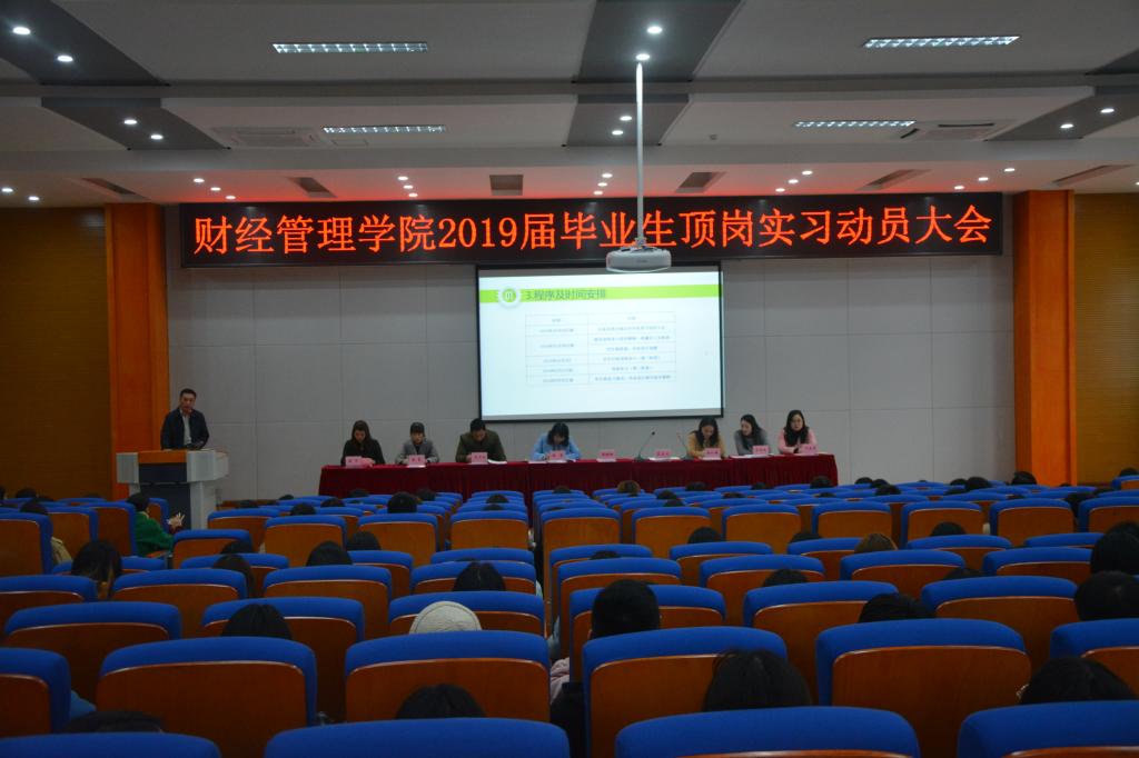 11月14日,财经管理学院在2教学术报告厅召开2019届毕业生顶岗实行动员大会,学院党政负责人、教务办、学工办、学院全体教师、学生代表共260余人参加了会议。