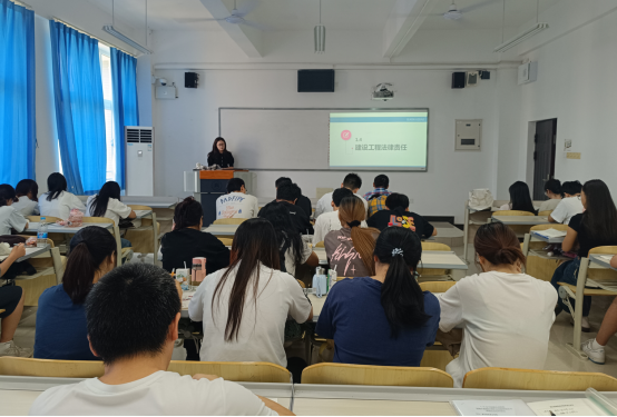 9月24日上午,建筑工程教研室何姗珊老师在2413教室开讲《建筑工程法规》“课程思政”公开课,建筑工程教研室江峰、王明伟及教务办齐丹丹老师到现场听课。