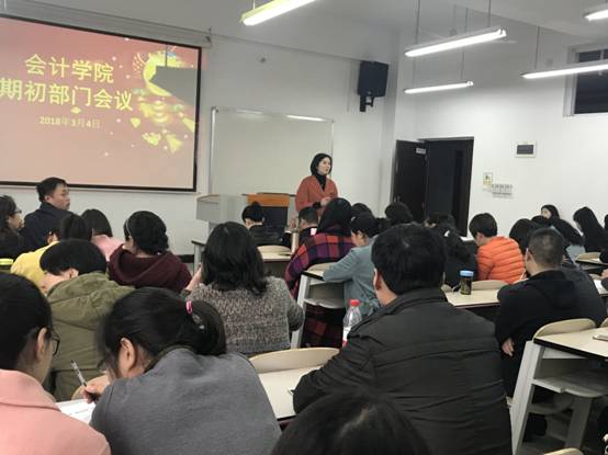 2018年3月4日下午14点30分,会计学院全体教师在1401教室召开了2017-2018学年第二学期期初部门会议。会议的主要内容如下: