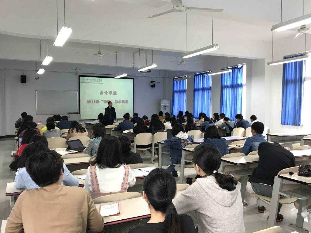 根据学校举办2018年春 “微课”教学比赛的通知精神,为切实促进教师专业发展,进一步提升教师教学能力和信息技术应用能力,激发教师更新教育理念和掌握现代信息技术的热情,经过前期的充分准备和精心组织,2018年4月25日下午2:00,会计学院“微课”教学比赛在教学楼1421教室举行。全体教师和辅导员观看了此次比赛。