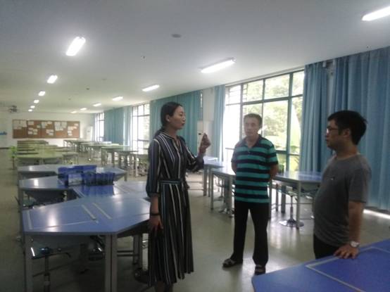 2018年7月23日,院长苏启立与实习实训管理中心主任杨秋静一同考察了江苏财经职业技术学院智慧商科综合实训中心。