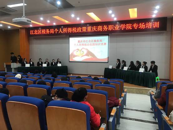 为全面贯彻创新、协调、绿色、开放、共享的发展理念,进一步推进财会金融专业群建设,聚焦行业转型升级,深化产教融合。2018年12月26日下午,在2018年新个人所得税条例出台之际,我院与重庆市江北区税务局在学校二教学术报告厅共同组织开展了“个人所得税法进校园” 主题活动。