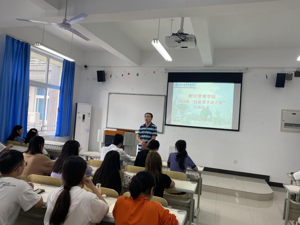 2020年9月24日,学院第二期“技能英才班”顺利开班,会计专业群各专业负责人及全体入选学员参加了开班仪式。会计15班的张耀元同学代表全体学员发言,会计专业带头人雷霞副教授对试点班的学习和训练任务作了具体部署。