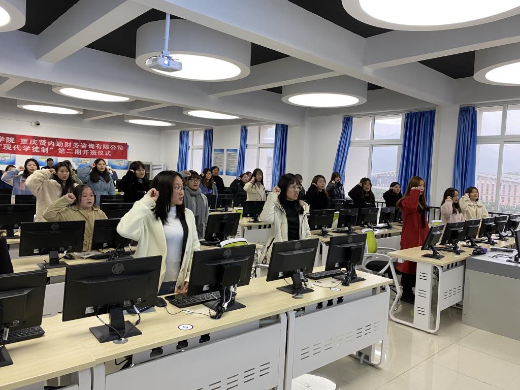12月7日,学院在实训楼3406举行“现代学徒制”第二期试点班开班仪式,30名试点班学员、合作企业--重庆市贤内助财务咨询有限公司总经理冯璞、企业导师、会计教研室主任雷霞等参加了开班仪式。