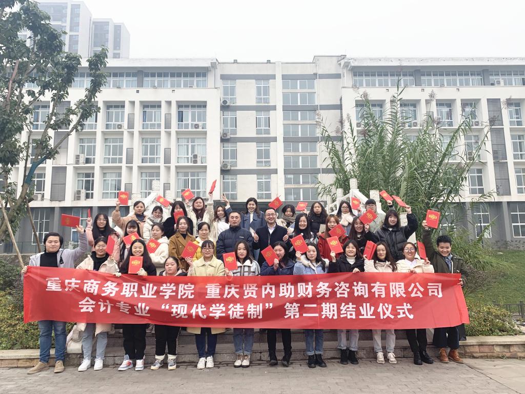 12月26日,会计专业“现代学徒制”第二期试点班结业仪式在实训楼3406财务共享实训室进行。结业仪式由教务办韩尹露老师主持。
