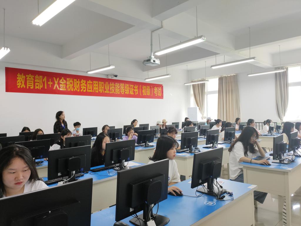 6月5日, 我院74名学生在实训楼4F参加“1+X” 金税财务应用职业技能等级证书考试。考试分为理论和实操两个模块,采用机考操作进行,考核内容涉及企业工商注册、税务注册、企业基本信息变更、“金税盘”发行、发票申请与领用、各类发票填写、保存及审查等各项税务流程,能够全面增强学生对理论知识的理解、实操工作的掌握及就业后对税务工作的适应能力。