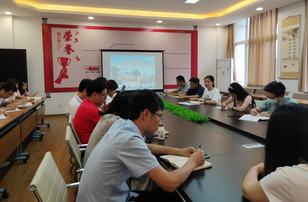 2021年6月18日,财经管理学院在2401召开了“百日行动”安全工作专题会议,会议由党总支副书记阳春艳主持,学院各办公室、教研室主任、全体专兼职辅导员参加会议。
