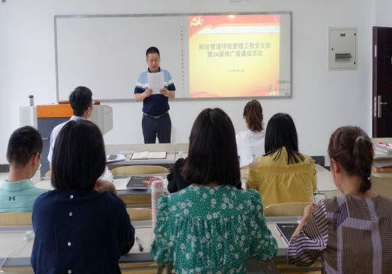 讲普通话,写规范字,做文明人。值此全国推普周活动之际,财经管理学院制定《财经管理学院第24届推广普通话宣传周活动方案》,组织全体教职工集中学习《教育部等九部门关于开展第24届全国推广普通话宣传周活动的通知》(教语用函〔2021〕1号)和《重庆市教育委员会等八部门转发教育部等九部门关于开展第24届全国推广普通话宣传周活动的通知》(渝教语函〔2021〕3号)的文件精神,开展了“普通话诵百年伟业 规范字写时代新篇”系列活动。