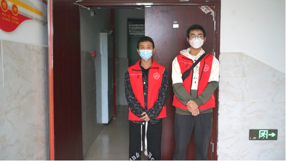 我是来自2022级建筑消防技术1班的刘华南,作为大一新生的我,来到商院就被身披红马甲的学长学姐们感动到了,扫码、提行李、协助办理寝室入住……疫情当前,得知学院招募志愿者,我与同班同学李志宏第一时间加入,如愿成为了红马甲中守楼小分队的队员。我们的工作是负责通知同学们做核酸,守住楼栋的出入口,有序确保每一层楼在指定地点按照要求排好队,确保不扎堆、不聚集,核酸检测秩序井然,工作虽然简单,但我们却感觉十分荣幸,因为我们知道身上多了一件红马甲就多了一份责任,我们在用自己微薄的力量在守护校园平安。