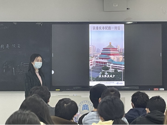 班会课上,辅导员分别利用线上+线下班会方式,采取诵读+播放+分享模式,让学生诵读了《致重庆市民的一封信》,播放了《抗疫》相关视频,分享了学校领导对重商学子的心里话,一个家庭需要有人守护,一座城市需要众人守护,我们的校园需要师生共同守护,通过主题班会,学院号召全体财经师生学子,用实际行动参与抗疫,自觉参与做核酸,积极参与志愿服务,自觉遵守法律法规和学校疫情防控要求,共同守护校园安全,为打赢疫情防控歼灭战展现应有的责任和担当。