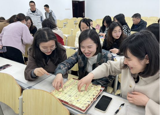 学院精心组织筹备此次活动,教职工全员参与,室内的棋类活动有象棋、围棋、五子棋等,老师们根据自己擅长的棋类进行组队对弈,以棋会友,欢声笑语。室外运动场,老师们将自己从平日繁忙的工作解放出来,随机组队参与乒乓球和篮球运动,激发身体运动细胞。