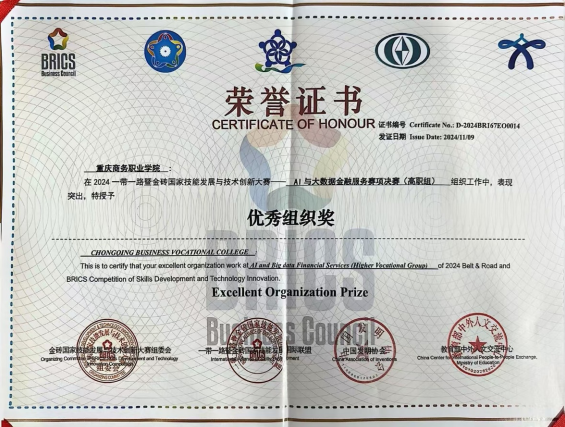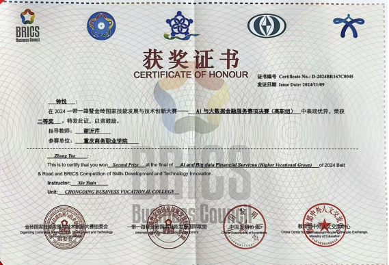 学院荣获2024年“一带一路”暨金砖国家技能发展与技术创新大赛AI与大数据金融服务赛项全国总决赛二等奖
