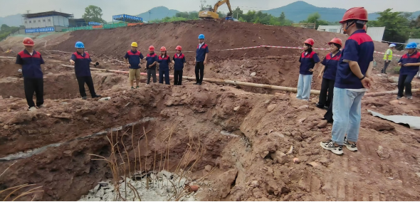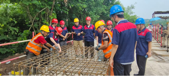 技术服务团队重点考察了钢筋工程、桩基工程等关键施工工序,现场观摩了作业人员的箍筋绑扎等操作流程,就钢筋的规格、间距、绑扎牢固度及节点处理等工艺要点与现场技术人员进行了深入交流,对桩型选择、施工工艺、质量控制要点及检测要求等桩基础技术的应用情况进行了详细了解,结合地质条件和设计要求评估了桩基础技术应用的合规性与可靠性。