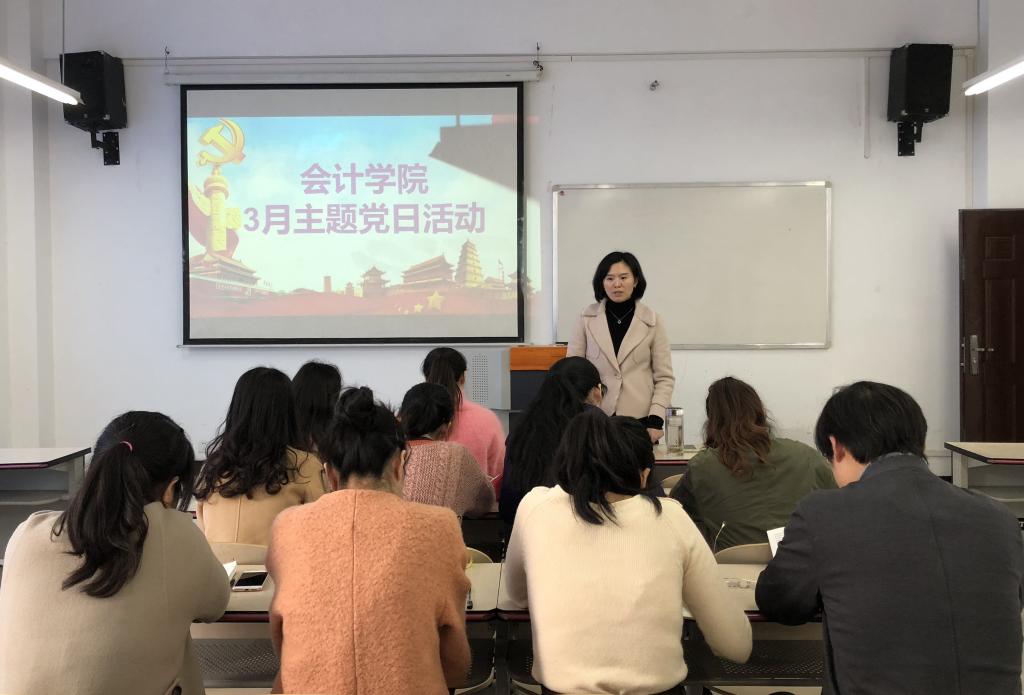 3月14日下午2:30,会计学院教师党支部在1401教室开展3月主题党日活动,支部全体党员参加,支部书记黄琳娜主持活动。