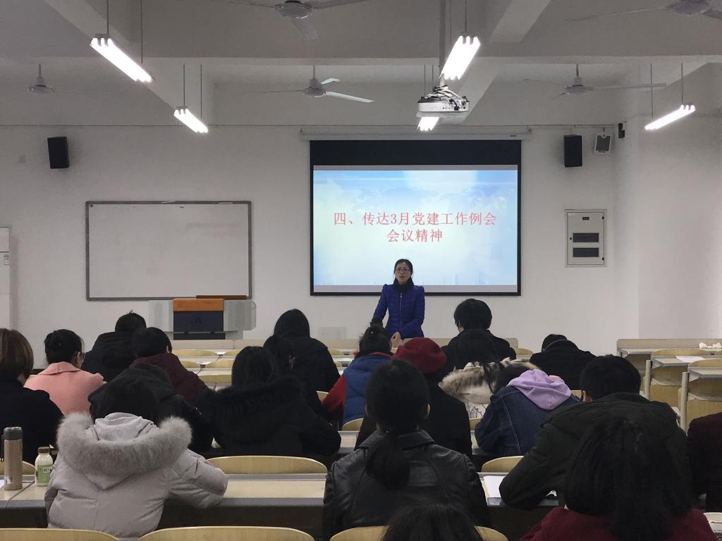 党总支副书记阳春艳传达了学校3月份党建工作例会会议精神,主要内容如下: