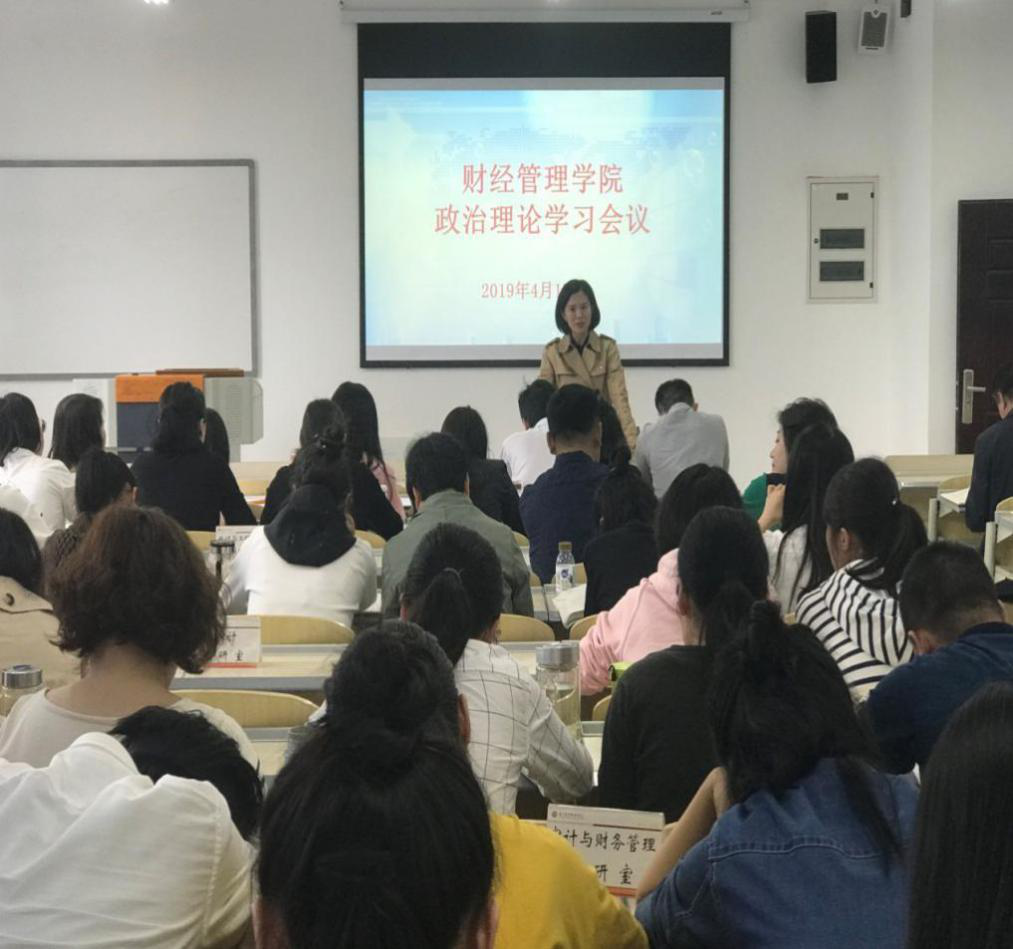 2019年4月17日下午14:00,财经管理学院全体教职工在2403教室参加4月政治理论学习活动。