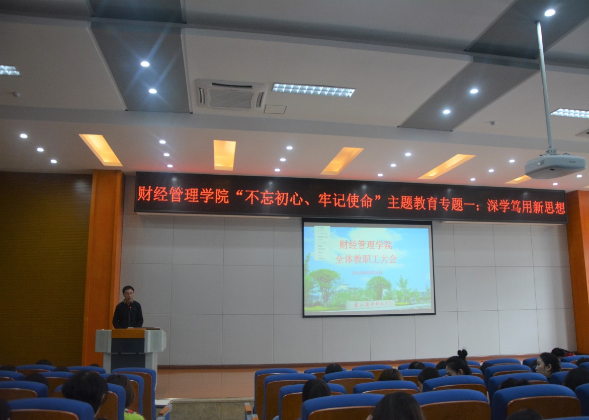 9月18日财经管理学院党总支在第二教学楼学术报告厅举行“不忘初心、牢记使命”主题教育集中学习,学院全体党员参加了本次专题学习。